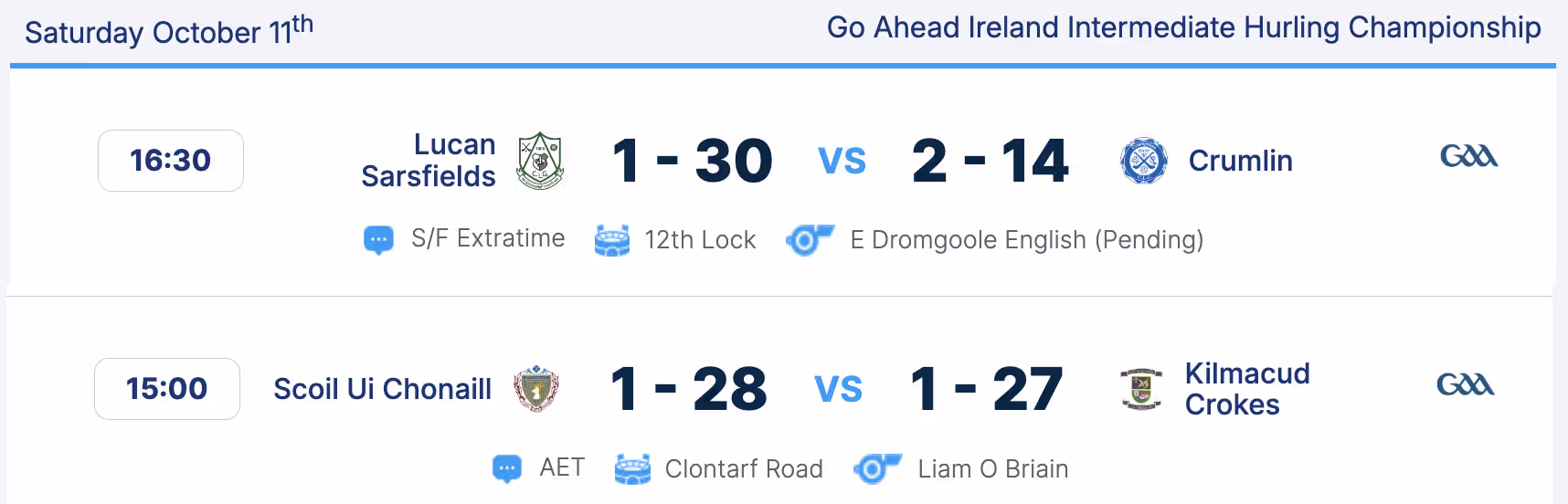 So the final table for the intermediate champsionship was