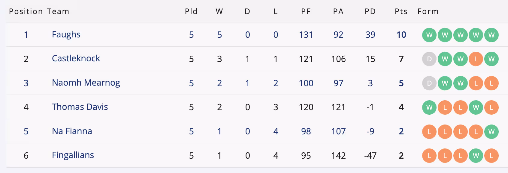 Faughs have been motoring well right from the group stage, where they finished top of the group with 5 wins from 5 and a points difference of +39.