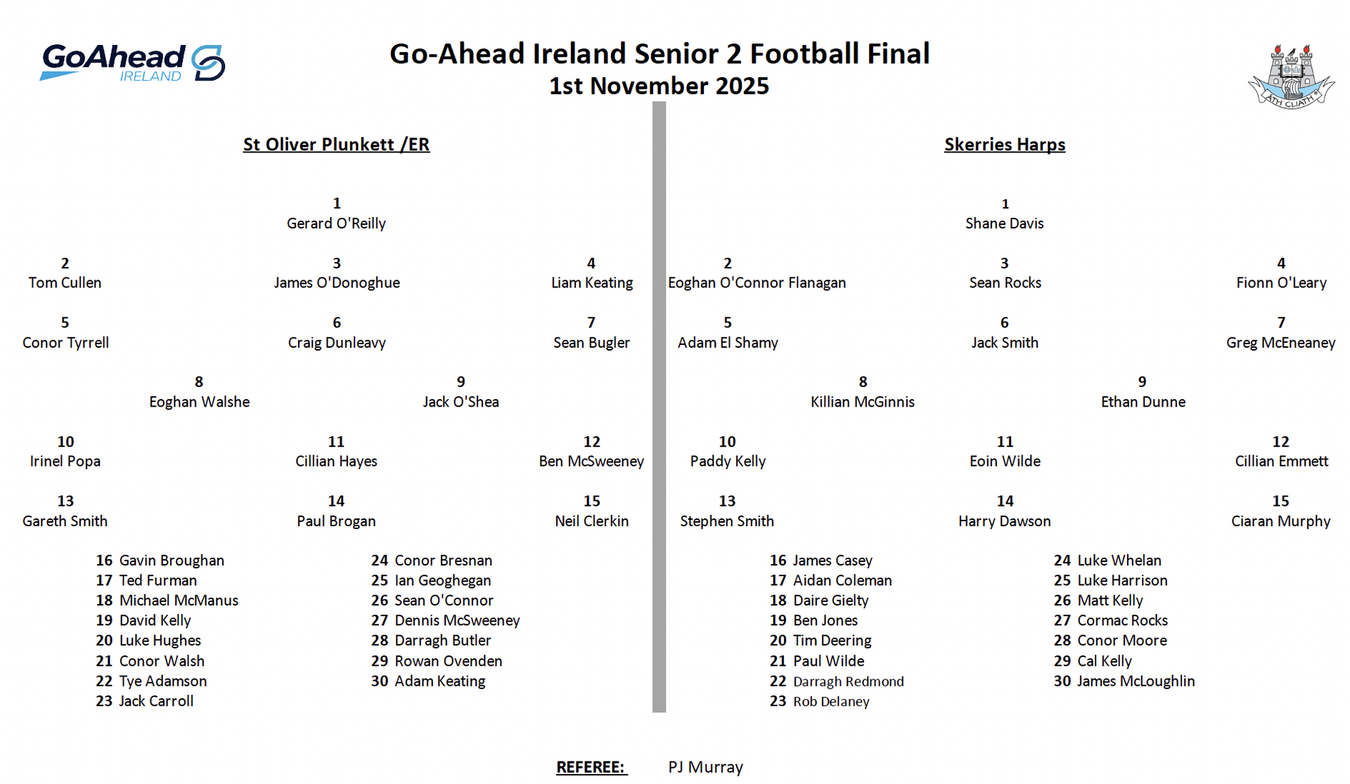 Congratulations to Skerries Harps, they ran up a big halftime lead, commiserations to OPER did well to reel them in with a great fight back in the second half but couldnt quite get there. It'll be interesting to see how both clubs go next year in SFC1.