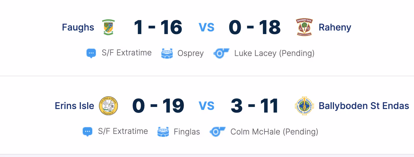 Raheny were scoring goals for fun with Liam Dunne back. Faugh's had their typical "good win without blowing the opposition away" result but BSJ had been improving as the competition went on, so it was still a good result.