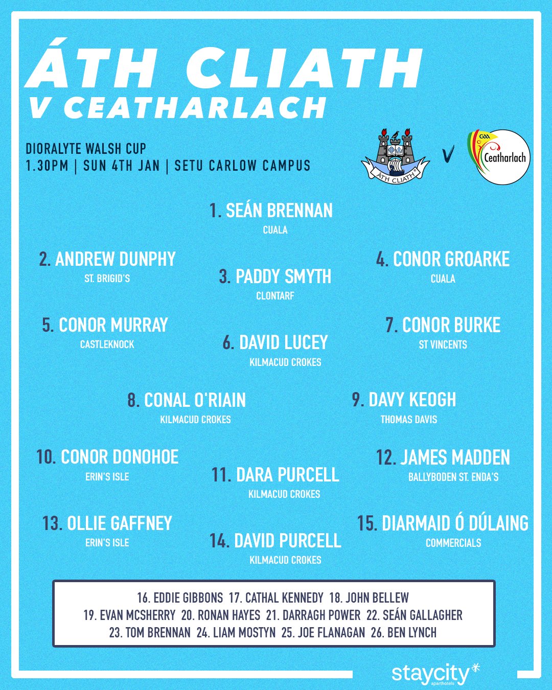 Scorers – Dublin: C Donohoe 1-4 (0-1f), C O’Sullivan 1-3 (0-2f), D Keogh 1-2, D Kenny (2f), O Gaffney 0-3 each, C Kennedy, L Mostyn 0-2 each, C Boyle (f), S Gallagher, T Brennan, N Hogan, J Madden 0-1 each. Westmeath: D Williams 1-3 (1-3f), E Keyes 1-0, K Doyle 0-3 (3f), E Cunneen, J Coll, D McCormack 0-2 each, P Clarke, J Gillen 0-1 each.